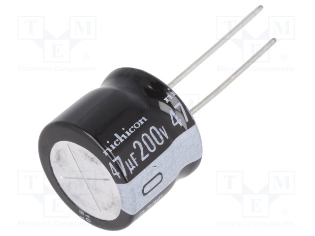 Конденсатор: электролитический; THT; 47мкФ; 200ВDC; Ø18x15мм; ±20% |