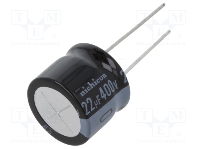 Конденсатор: электролитический; THT; 22мкФ; 400ВDC; Ø18x15мм; ±20% |