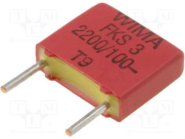 Конденсатор: полиэфирный; 2,2мкФ; 63ВAC; 100ВDC; Шаг: 15мм; ±10% |