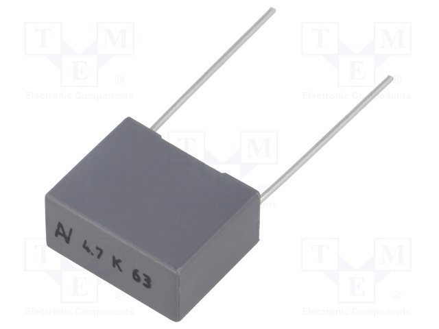 Конденсатор: полиэфирный; 4,7мкФ; 63ВAC; 100ВDC; Шаг: 27,5мм; ±10% |