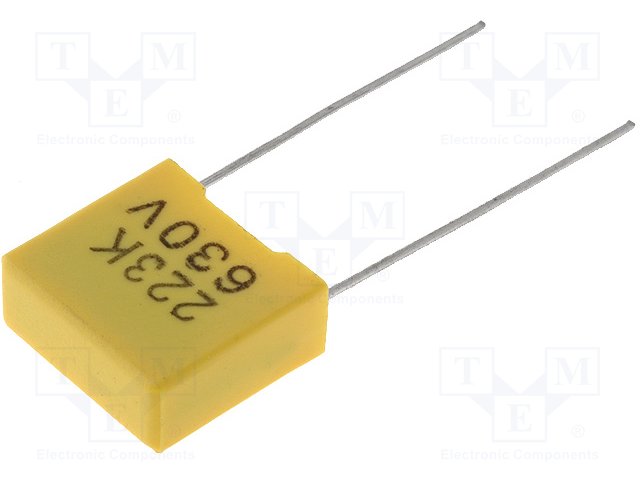 Конденсатор: полиэфирный; 22нФ; 630ВDC; Шаг: 10мм; ±10%; 13x6x12мм |