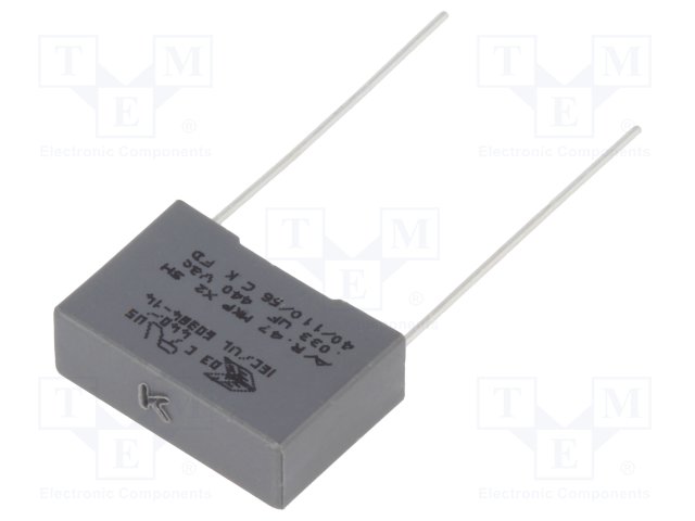 Конденсатор: полипропиленовый; Х2; 33нФ; 15мм; ±10%; 18x6x12мм