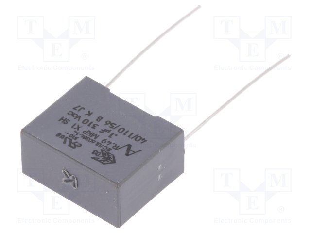 Конденсатор: полипропиленовый; Х2; 1мкФ; 27,5мм; ±10%; Монтаж: THT