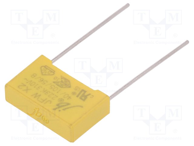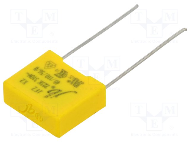 Конденсатор: полипропиленовый; Х2; 220нФ; 22мм; ±10%; Монтаж: THT |