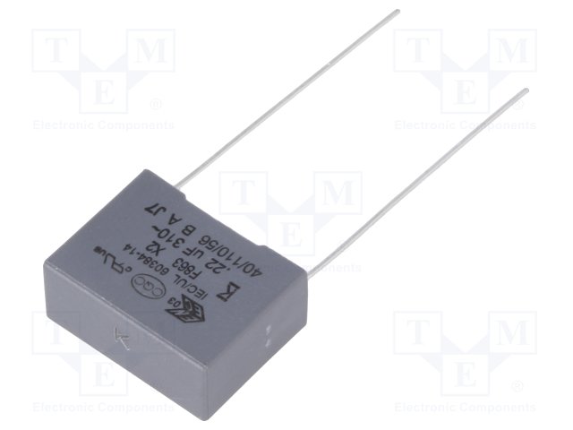 Конденсатор: полипропиленовый; Х2; 0,22мкФ; 15мм; ±10%; -40÷110°C
