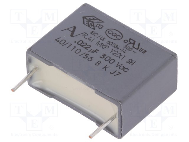 Конденсатор: полипропиленовый; Y2; 220нФ; 22,5мм; ±20%; -40÷110°C |