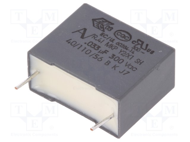 Конденсатор: полипропиленовый; Х2; 33нФ; 10мм; ±20%; 13x5x11мм |