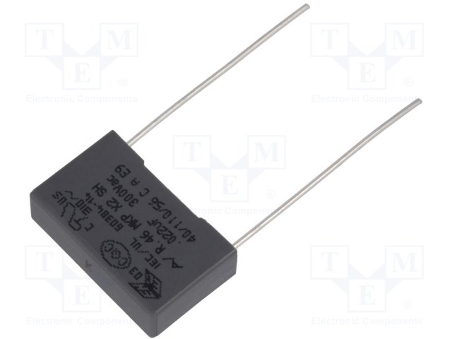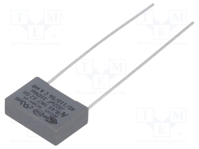 Конденсатор: полипропиленовый; Х2; 22нФ; 15мм; ±10%; 18x5x11мм |
