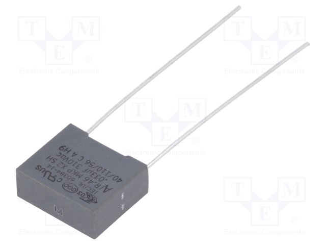 Конденсатор: полипропиленовый; Х2; 33нФ; 15мм; ±20%; 18x5x11мм |