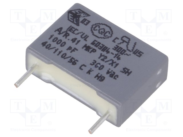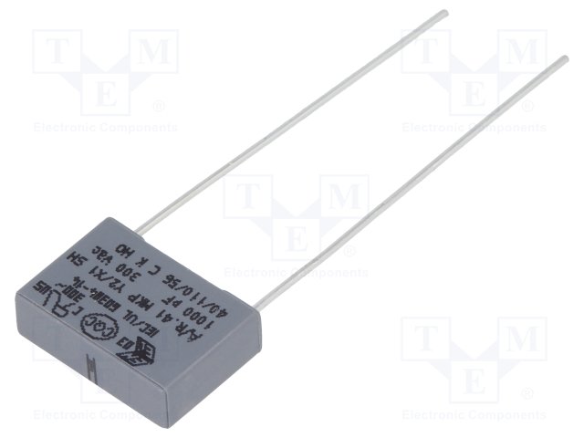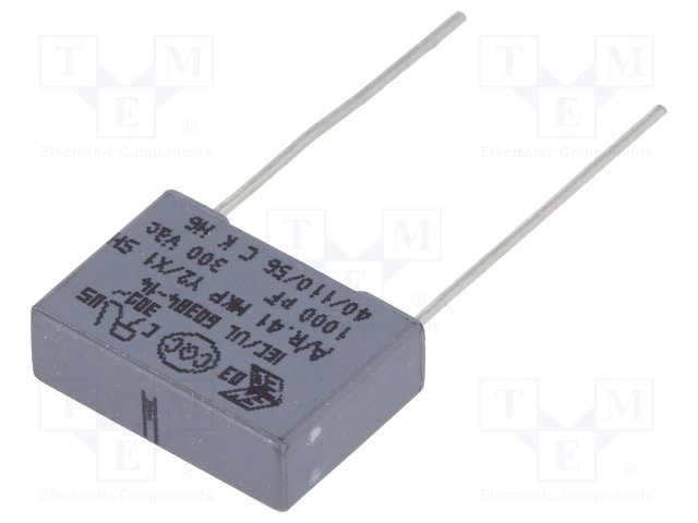 Конденсатор: полипропиленовый; Y2; 1нФ; 10мм; ±20%; 13x4x9мм; 1кВDC |