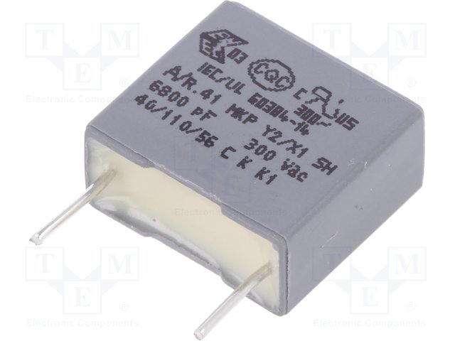 Конденсатор: полипропиленовый; Y2; 6,8нФ; 10мм; ±20%; 13x6x12мм |