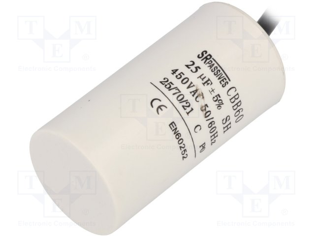 Конденсатор: для двигателей, фазосдвигающий; 25мкФ; 450В; ±5%