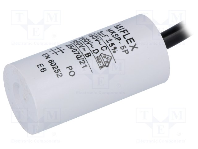 Конденсатор: для двигателей, фазосдвигающий; 3мкФ; 450В; ±5%