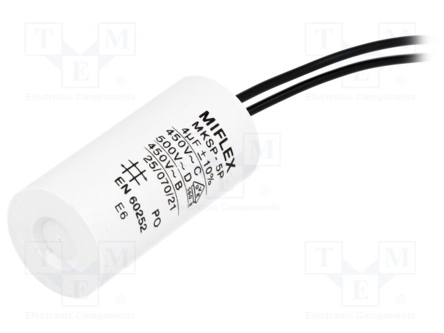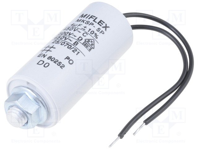 Конденсатор: для двигателей, фазосдвигающий; 4мкФ; 450В; ±5%