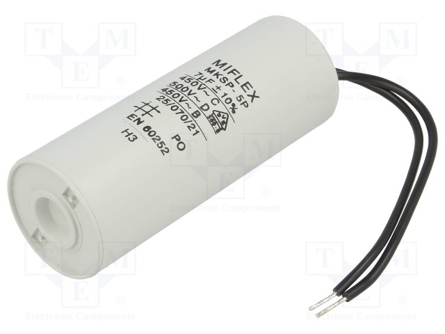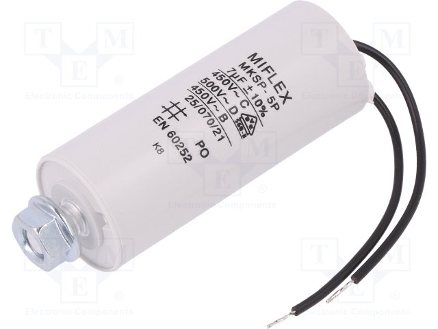 Конденсатор: для двигателей, фазосдвигающий; 7мкФ; 450В; ±10%