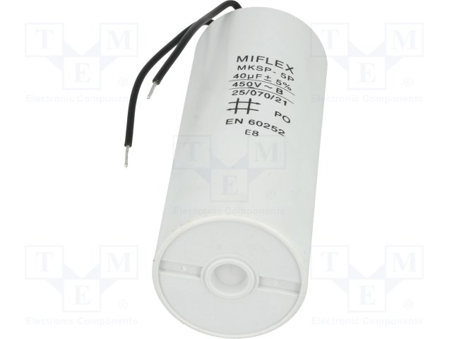 Конденсатор: для двигателей, фазосдвигающий; 40мкФ; 450В; ±10%