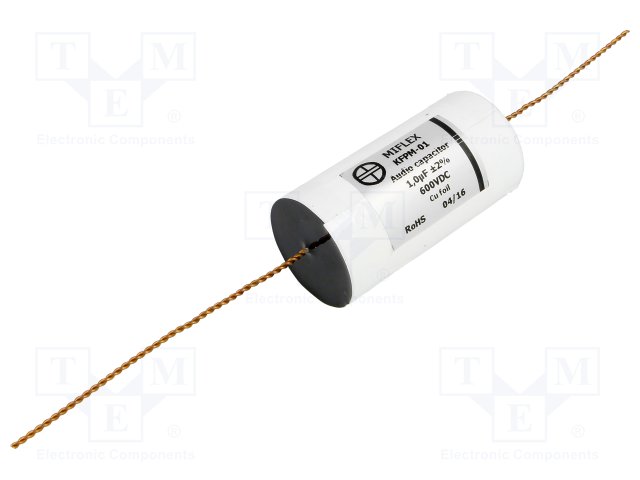 Конденсатор: медь-полипропилен; 1мкФ; 600ВDC; ±2%; Ø37x62мм; 0,008 |