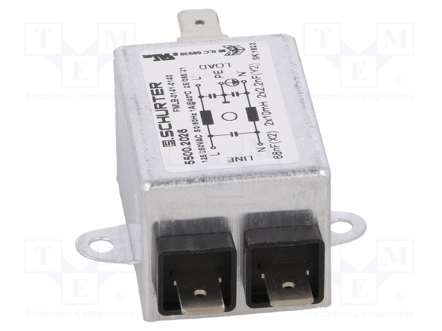 Фильтр: помехоподавляющий; однофазный; 250ВAC; Cx: 100нФ; Cy: 2,2нФ |