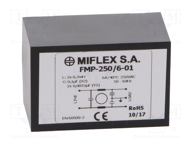Фильтр: помехоподавляющий; 250ВAC; Iраб.макс: 6А; Ir: 0,43мА |