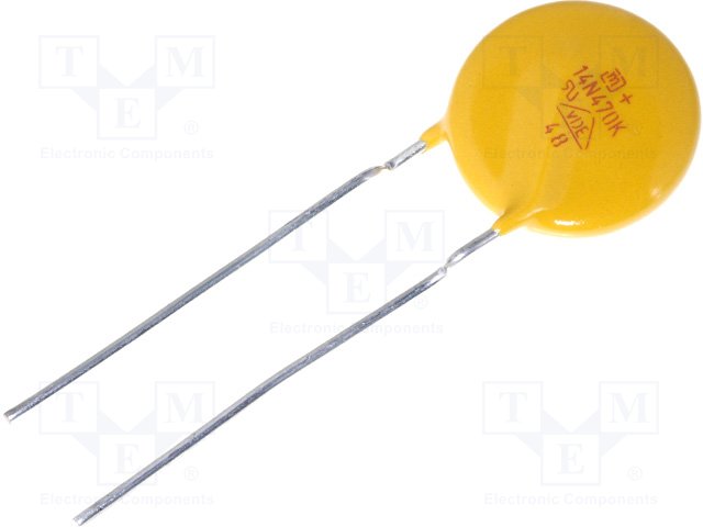 Варистор: металлооксидный; THT; 30ВAC; 38ВDC; 47В; ±10%; 1кА; 12Дж