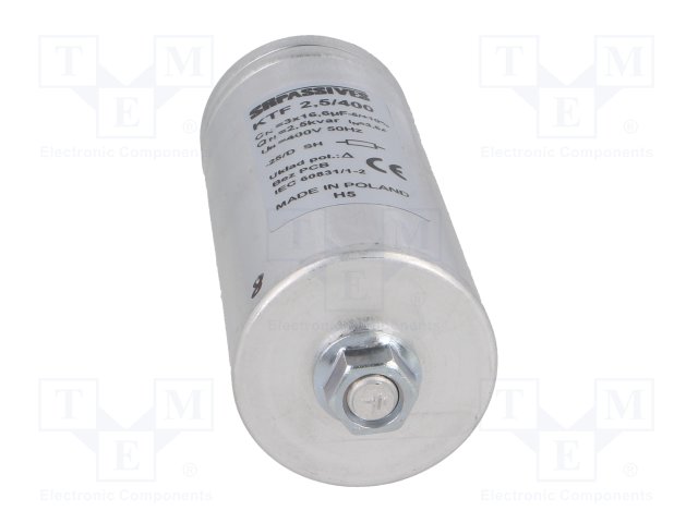 Конденсатор: полипропиленовый; однофазный; Q@50Гц: 2,5кВАР; 4,8А