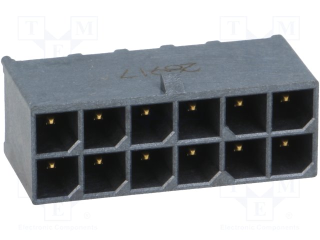 Гнездо; провод-плата; "папа"; Mega-Fit; 5,7мм; PIN: 12; 23А; UL94V-0 |