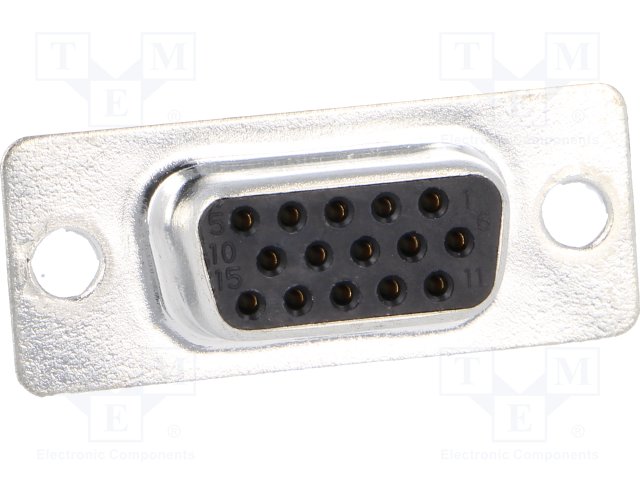 D-Sub HD; PIN: 15; гнездо; ED-EHD; "мама"; Фиксация: винтами; THT |