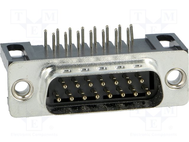 D-Sub; PIN: 15; гнездо; "папа"; цанговые контакты; угловой 90°; THT |