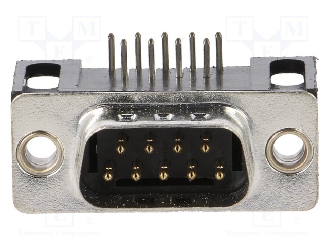D-Sub; PIN: 9; гнездо; "папа"; цанговые контакты; угловой 90°; THT |