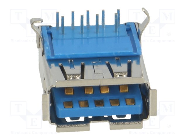 Гнездо; USB A; на PCB,клипса на PCB; THT; угловой 90°; V: USB 3.0 |