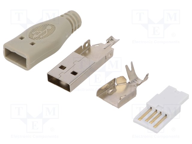Вилка; USB A; "папа"; на провод; пайка; PIN: 4; прямой; серый |