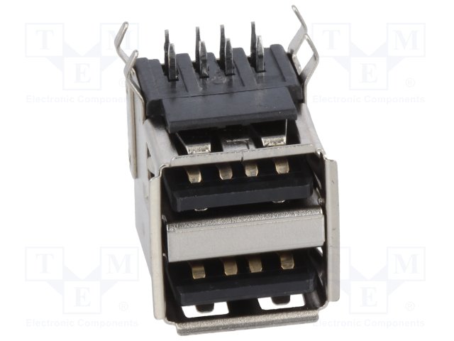 Гнездо; USB A; на PCB; THT; PIN: 4; угловой 90°; двойное; V: USB 2.0 |