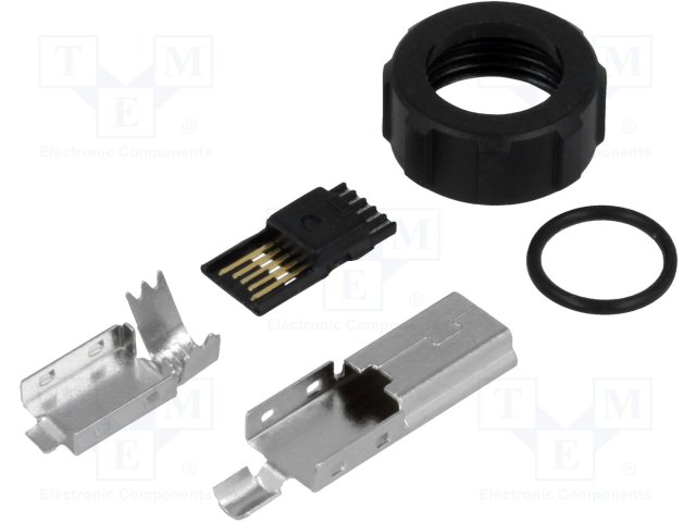 Вилка; USB B mini; на провод; пайка; прямой; под заливку; IP67 |