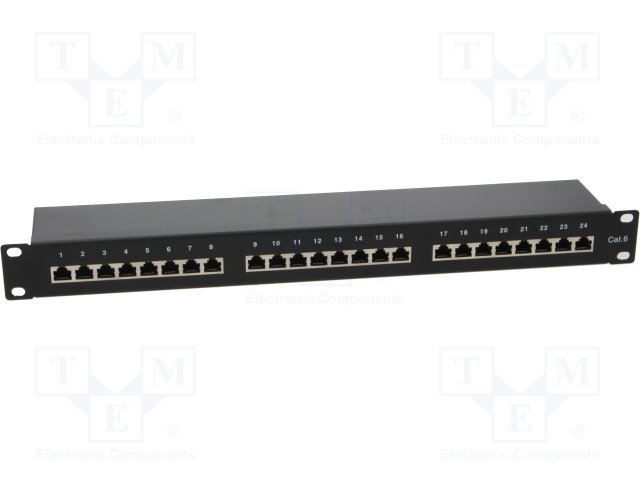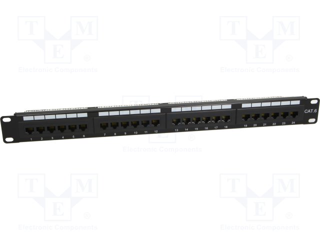 Patch panel; RJ45; Кат: 6; RACK; Цвет: черный; Кол-во портов: 24 |