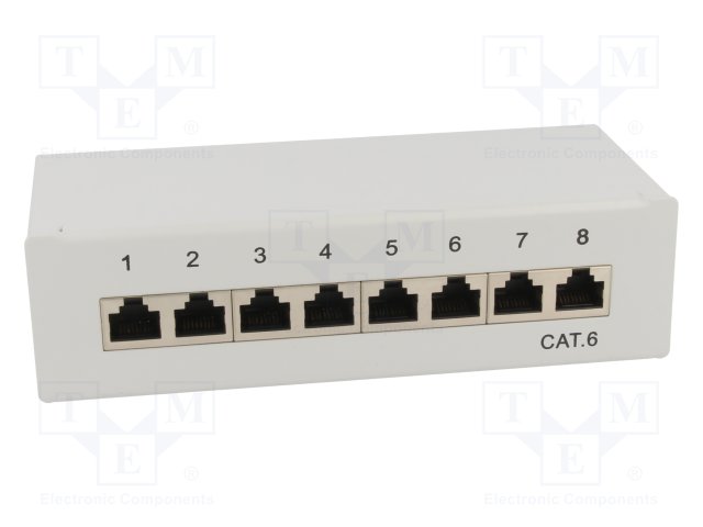 Patch panel; RJ45; Кат: 6; Цвет: серый; IDC; Кол-во портов: 8 |