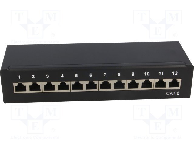 Patch panel; RJ45; Кат: 6; RACK; Цвет: черный; Кол-во портов: 12 |
