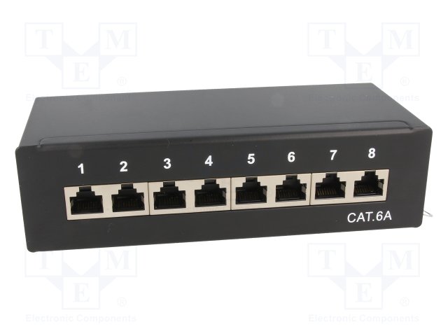 Patch panel; RJ45; Кат: 6; Цвет: черный; Кол-во портов: 8 |