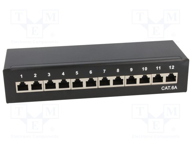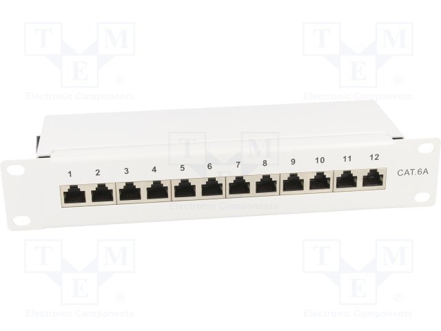 Patch panel; RJ45; Кат: 6a; RACK; Цвет: серый; IDC; Кол-во портов: 12 |