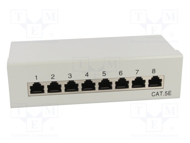 Patch panel; RJ45; Кат: 5e; Цвет: серый; накладное; Кол-во портов: 8 |