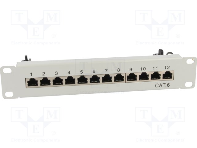 Patch panel; RJ45; Кат: 6; Цвет: серый; Кол-во портов: 12 |