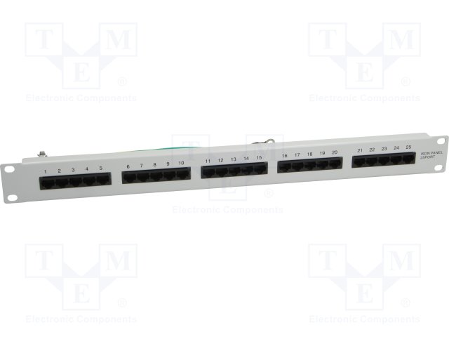 Patch panel; RJ45; RACK; Цвет: серый; Кол-во портов: 25 |