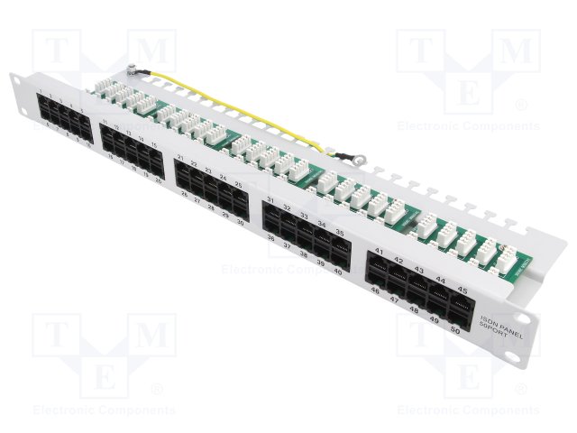 Patch panel; RJ45; RACK; Цвет: серый; Кол-во портов: 50 |