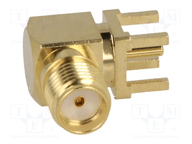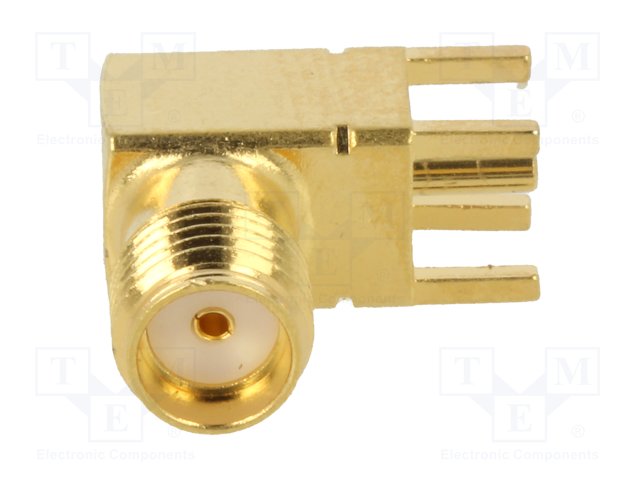 Гнездо; SMA; "мама"; угловой 90°; THT; на PCB; тефлон; позолота