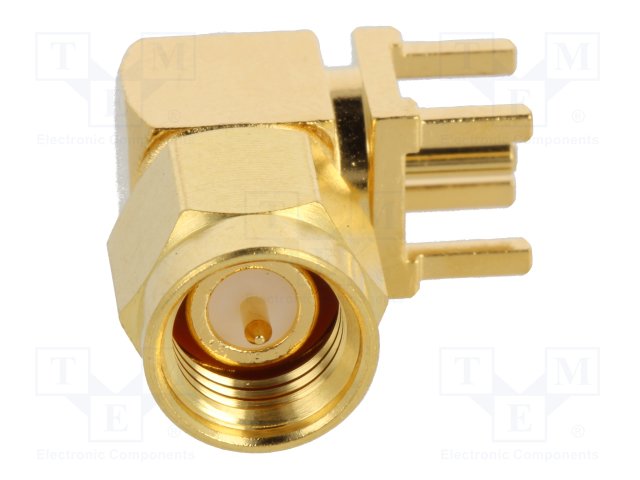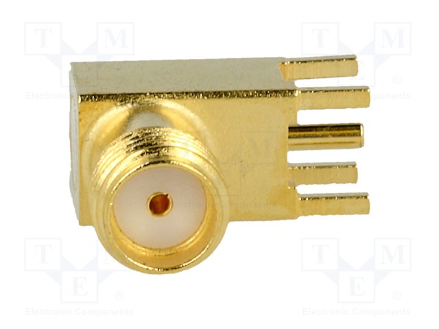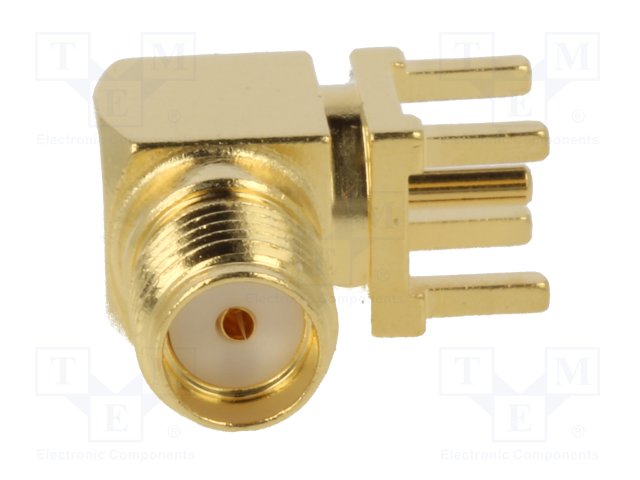 Гнездо; SMA; "папа"; угловой 90°; 50Ом; THT; на PCB; тефлон |