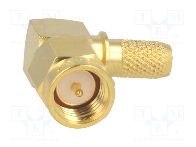 Вилка; SMA; "папа"; угловой 90°; 50Ом; обжим; на провод; тефлон |