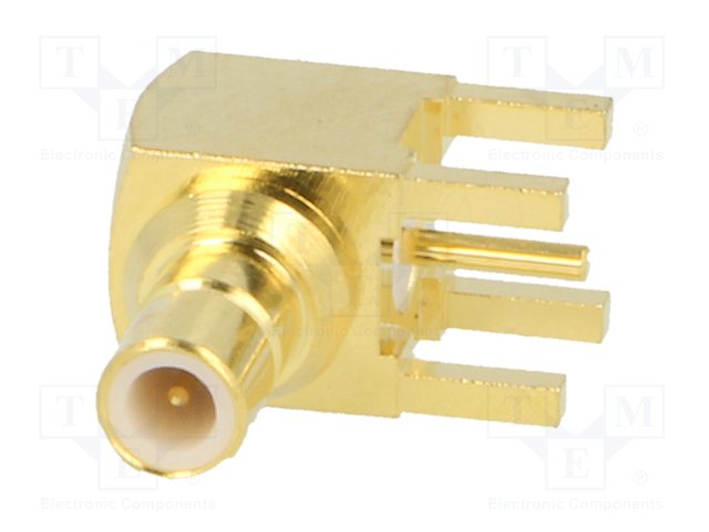 Гнездо; SMB; "папа"; угловой 90°; 50Ом; THT; на PCB; тефлон