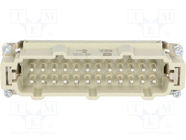 Разъем: прямоугольный; "папа"; Han E; PIN: 24; 24+PE; 16А; 500В; 3мкм |