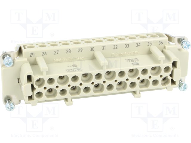 Разъем: прямоугольный; "мама"; Han E; PIN: 24; 24+PE; 16А; 500В; 3мкм |