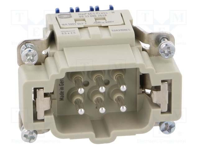Разъем: прямоугольный; "папа"; Han ES Press; PIN: 6; 6+PE; 16А; 500В |
