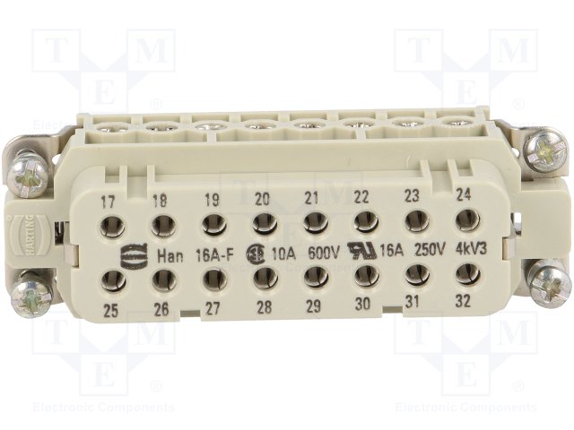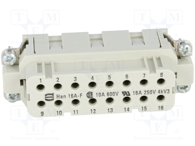 Разъем: HAN; "мама"; Han A; PIN: 16; 16+PE; размер 32A (2 x 16A) |